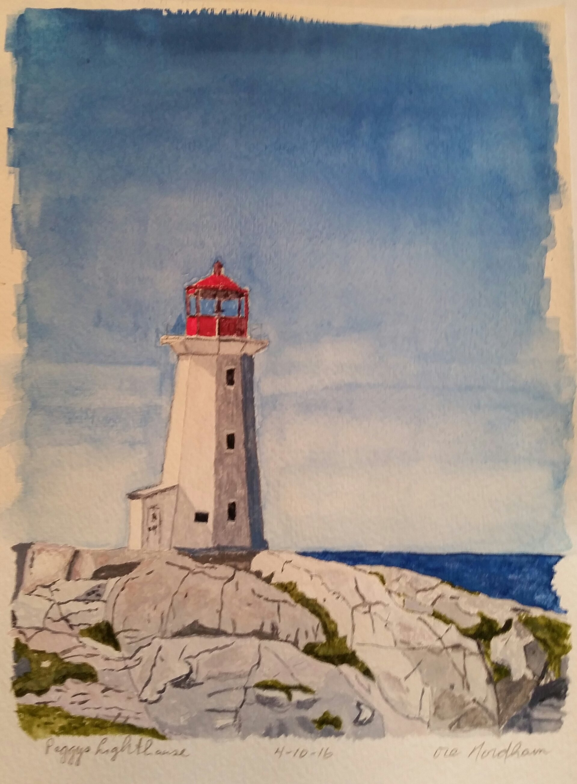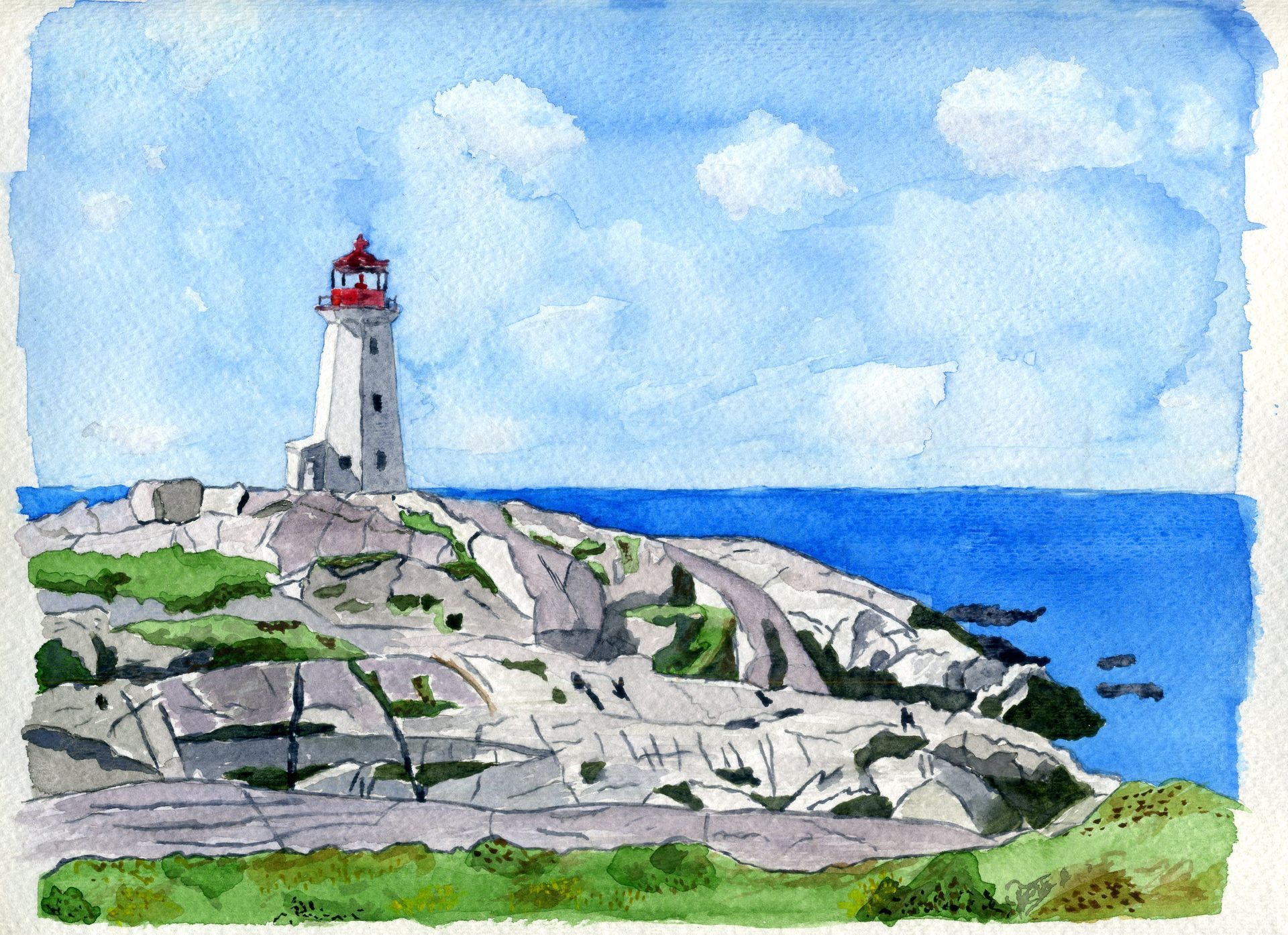 This painting was inspired by a picture I took during a cruiser to Canada/New England. Peggys Cove and it's lighthouse is just outside of Halifax, Nova Scotia.